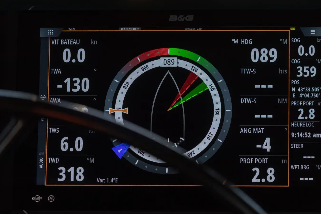 Modern electronics have become indispensable, but Gunboat focuses on a specific priority: making the boat easier to use at a high level. Beyond measurement and navigation data, electronics are increasingly focusing on key features with the autopilot as the main focus.