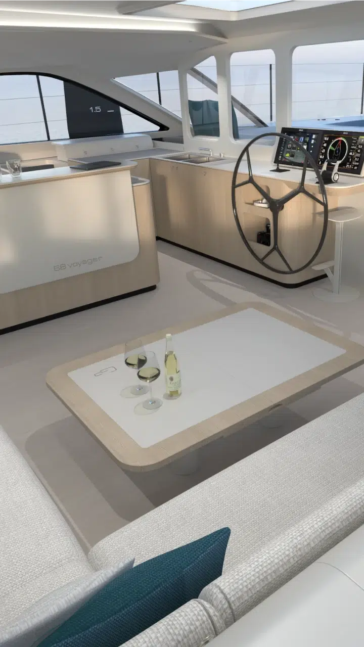 The Gunboat 68 Voyager: Optimized for extended voyages, this model features a larger living area than the classic Gunboat 68, enhancing comfort and functionality for life at sea. Explore the globe in luxury and style.