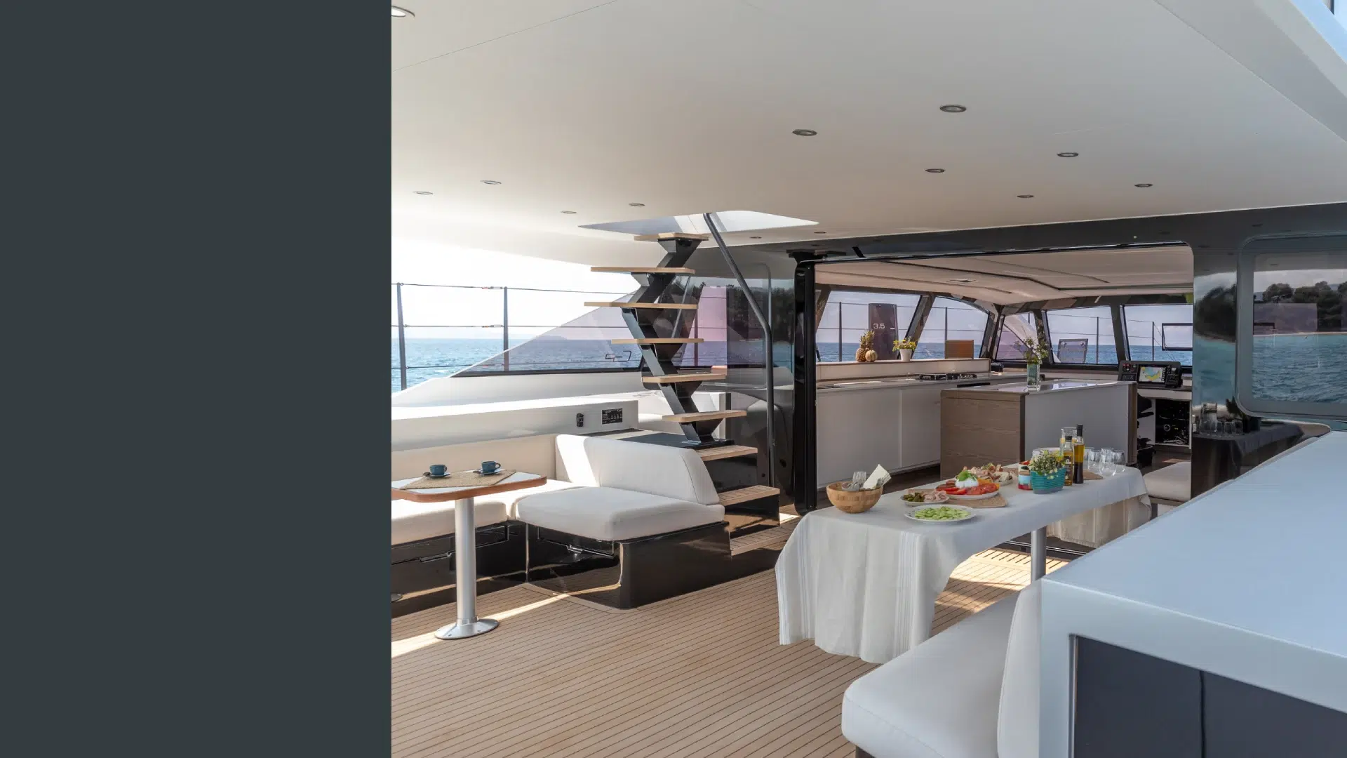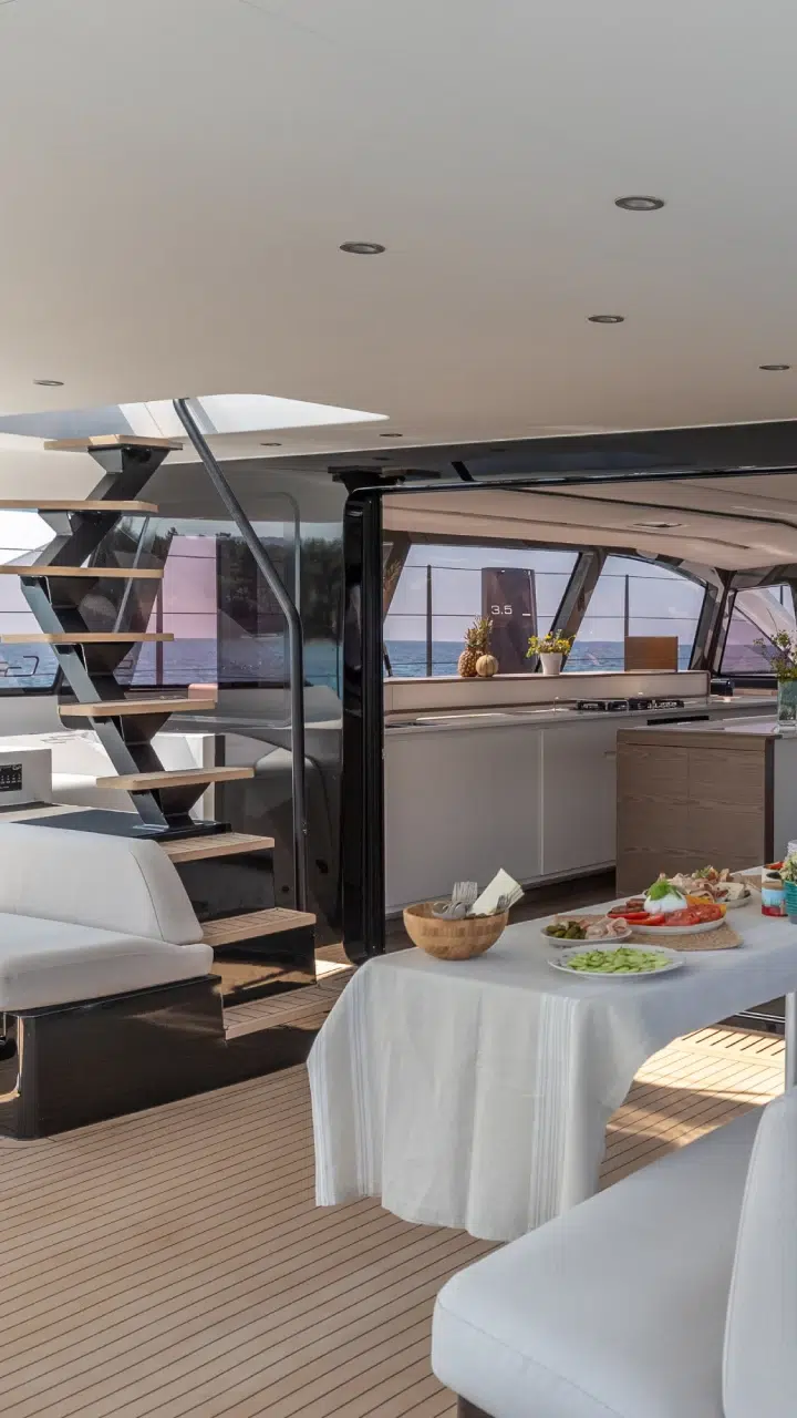 The Gunboat 72 Flybridge: Elevate your sailing with enhanced social spaces and panoramic views, blending luxury with performance for entertaining guests.